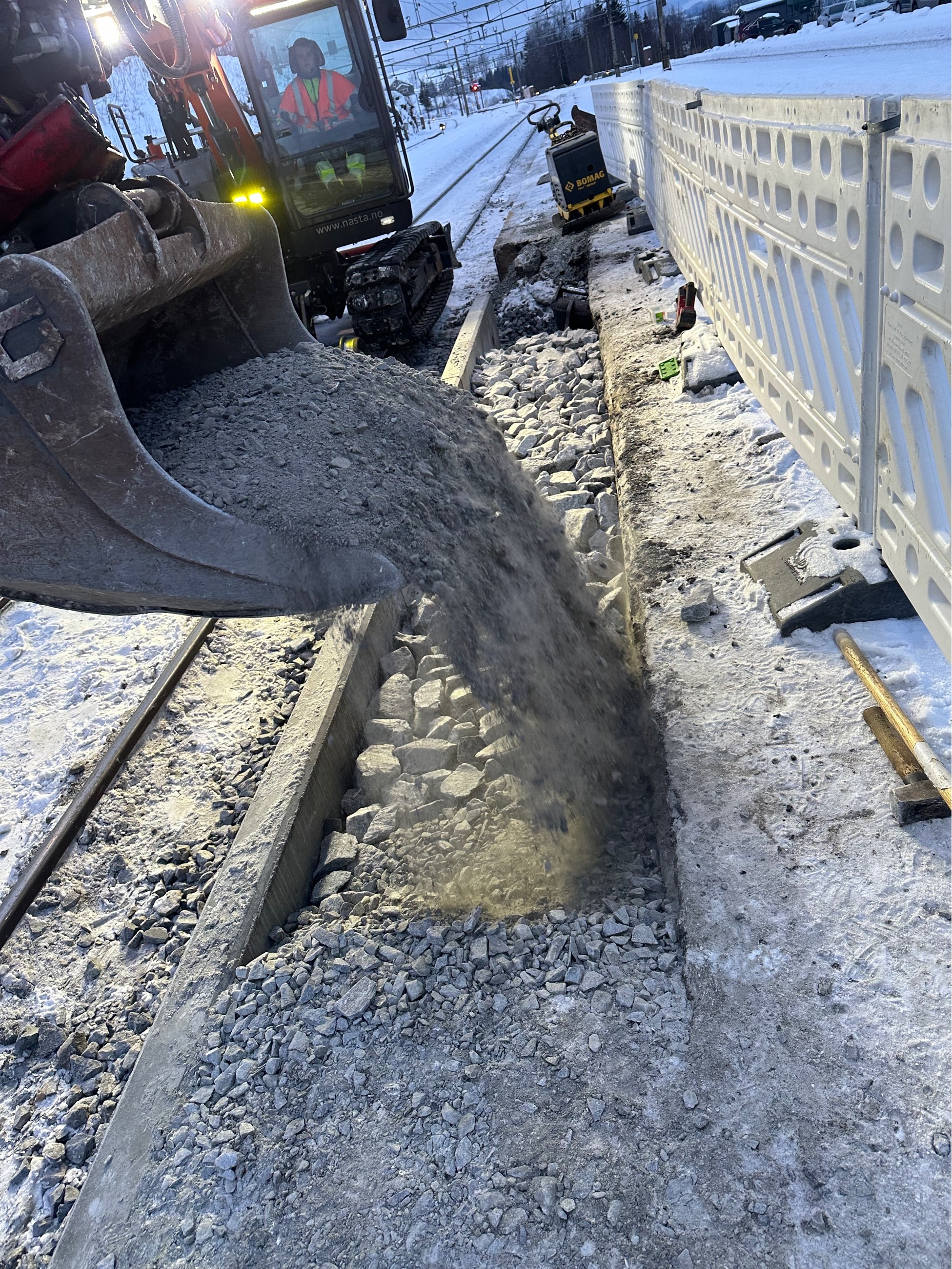 Vi hadde i oppgave å rehabilitere mellomplattformene på Roa og Hakadal stasjon.